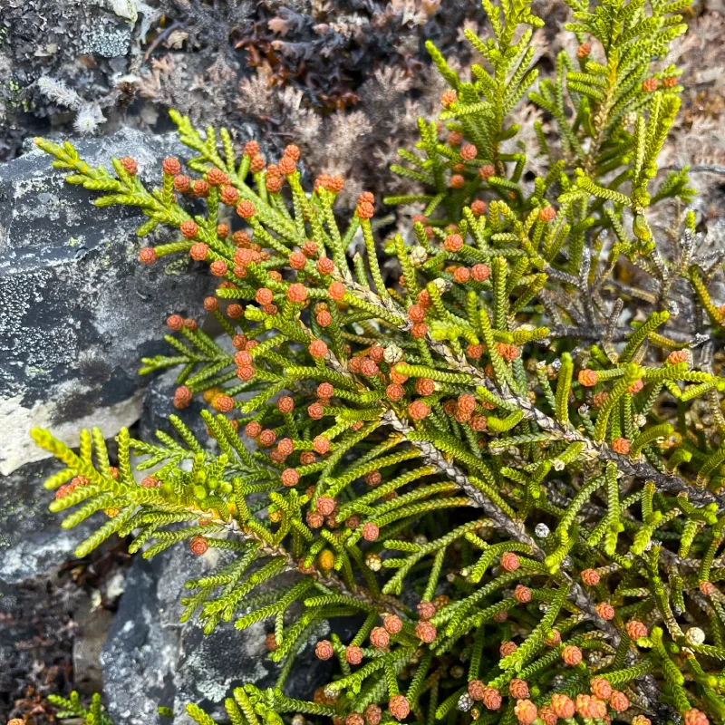 - Species: Microcachrys tetragona (Creeping Strawberry Pine)