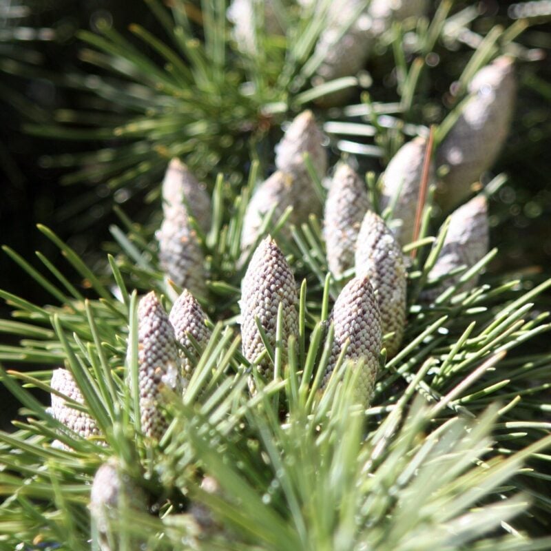 It produces upright barrel-shaped cones that sit atop branches and disintegrate slowly to release seeds, although it may take a few years for young trees to begin coning.